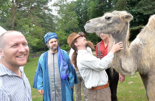 Wie ein Geist aus der Flasche hat er die Musikanten verzaubert und zwingt sie, ihn bei seinen Geschichten vom Orient bis ins ferne China mit Leib, Seele und einer Vielzahl an Instrumenten zu begleiten. Staunen Sie mit offenem Mund über Erzählungen von leidenschaftlicher Liebe, abgehackten Gliedmaßen, Suff und Völlerei. Hören Sie dazu Musik, die satt und glücklich macht.